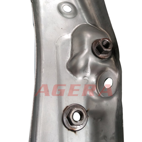 此焊接產品為汽車配件,鍍鋅板和M12法蘭螺母凸焊產品,采用安嘉自動化大功率儲能焊機,下電極采用仿形夾具定位,焊接成型外觀美觀,牢度強,不影響螺母的螺紋通過性。