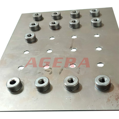 此產品為鍍鋅板M6圓螺母環凸焊產品,采用安嘉自動化大功率儲能凸焊機焊接,配焊接螺母輸送機,自動送螺母。焊接效率高,而儲能焊機通過充電變壓器給大電容充電,再給大功率變壓器在很短的內釋放出來,輸出電流大,熱量集中,滲透力強,焊接出來成品外觀熱影響區小,強度高,質量穩定。