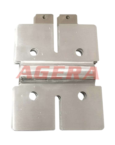 此焊接產品為鋁覆鎳高分子擴散焊的產品,采用安嘉鋁箔軟連接高分子擴散焊機焊接,此設備采用C型整體箱式結構,剛性強、散熱好,焊接變形小;上下電極有三維精密微調裝置,可精準校平平行度,保證焊接精度和平整度,設備自帶風冷功能,高效節能,可24小時連接工作等特點。