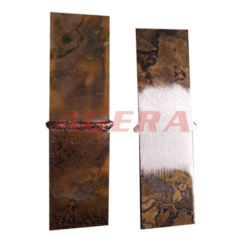 此焊接產品為3*50mm紫銅板對焊樣品,采用安嘉自動化交流逆變電阻對焊機,上下電極要求平整度高,大壓力夾緊,加以大電流對焊而成。以下為焊接此產品的焊機。